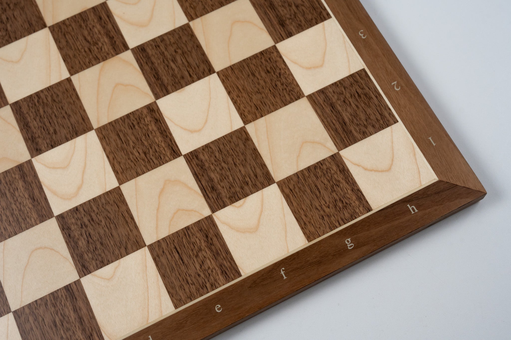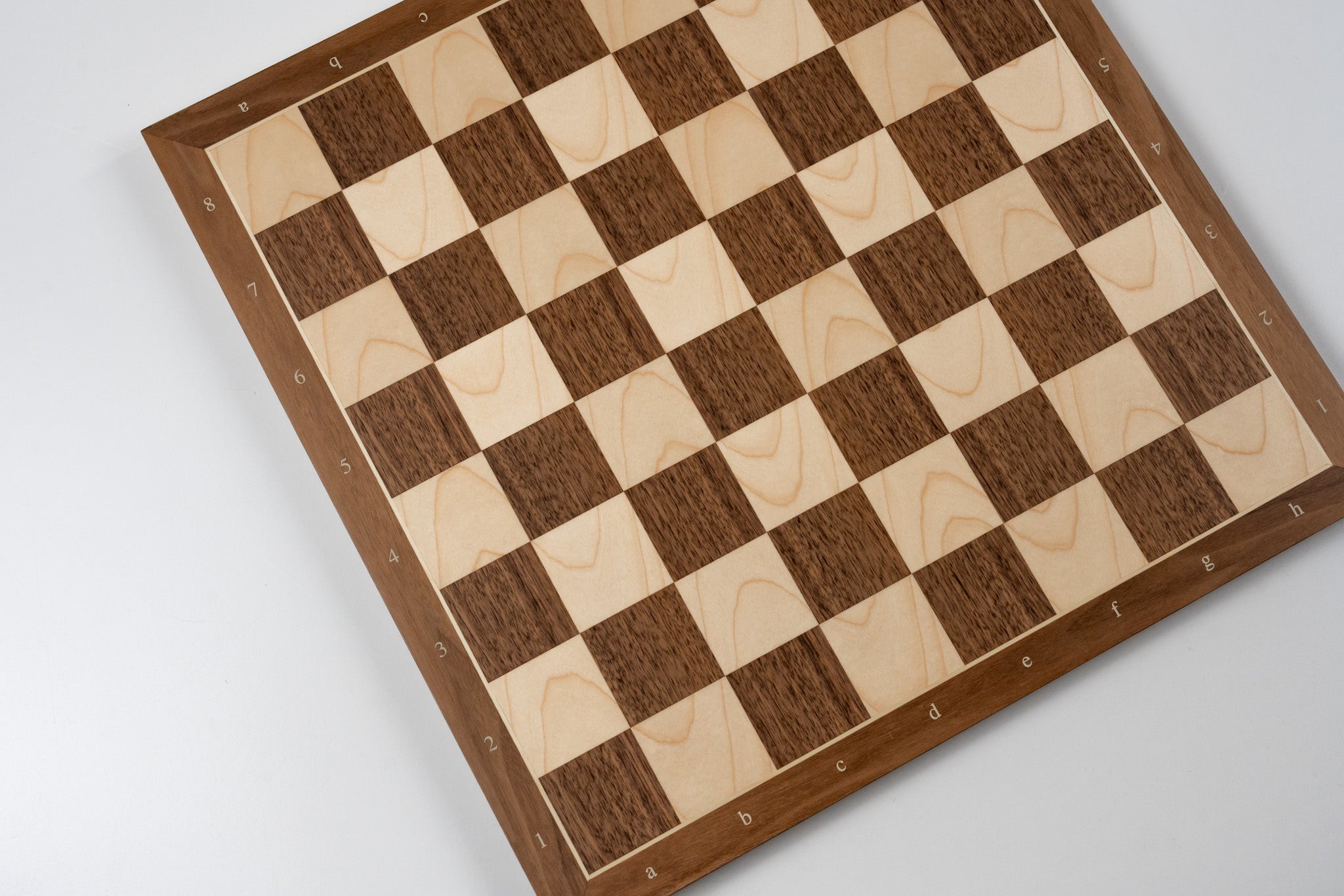 Affordable very well made walnut and maple chessboard with a matte finish that is pleasing to the eye and touch. Notated for the beginner and experienced players.