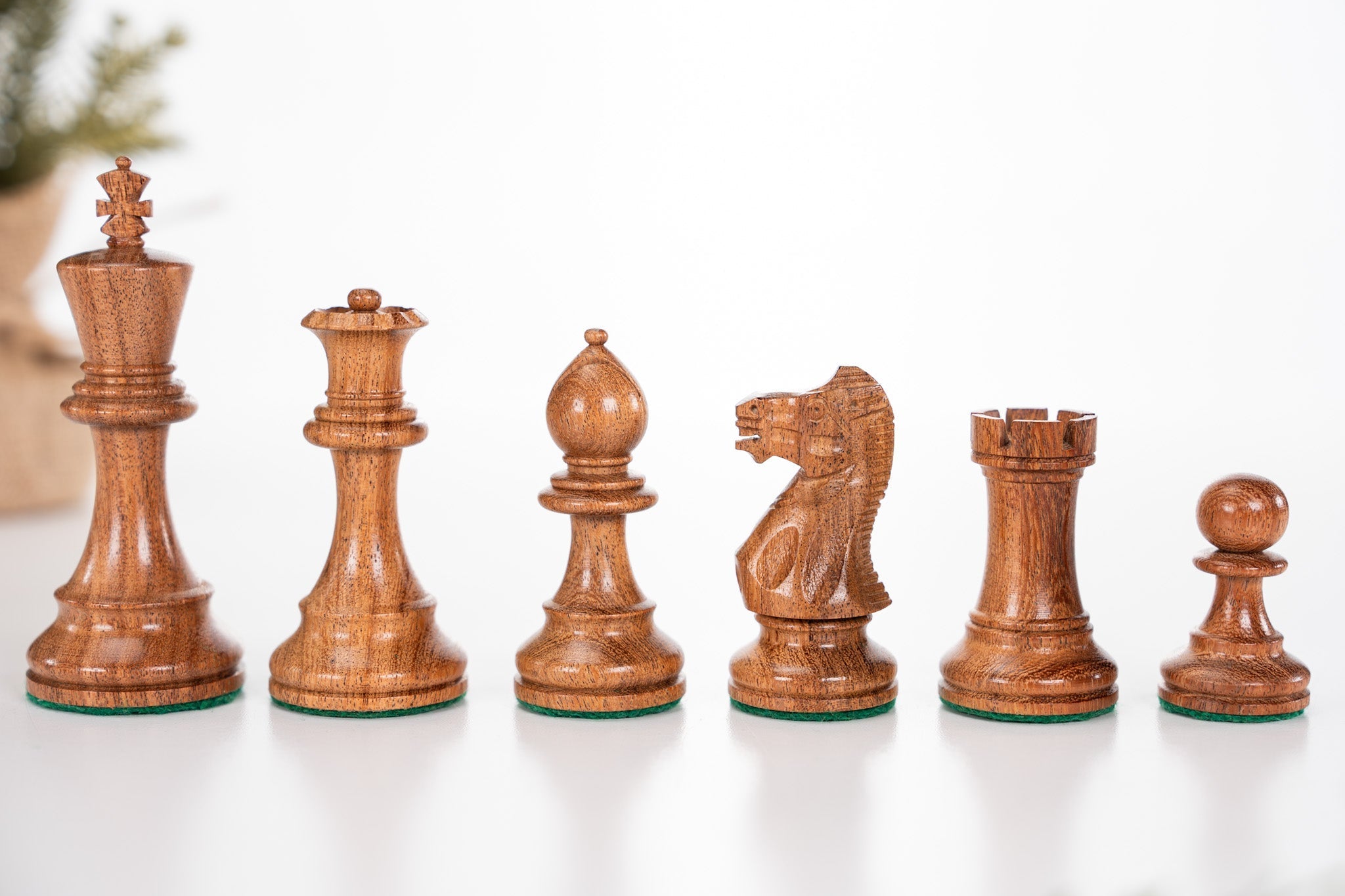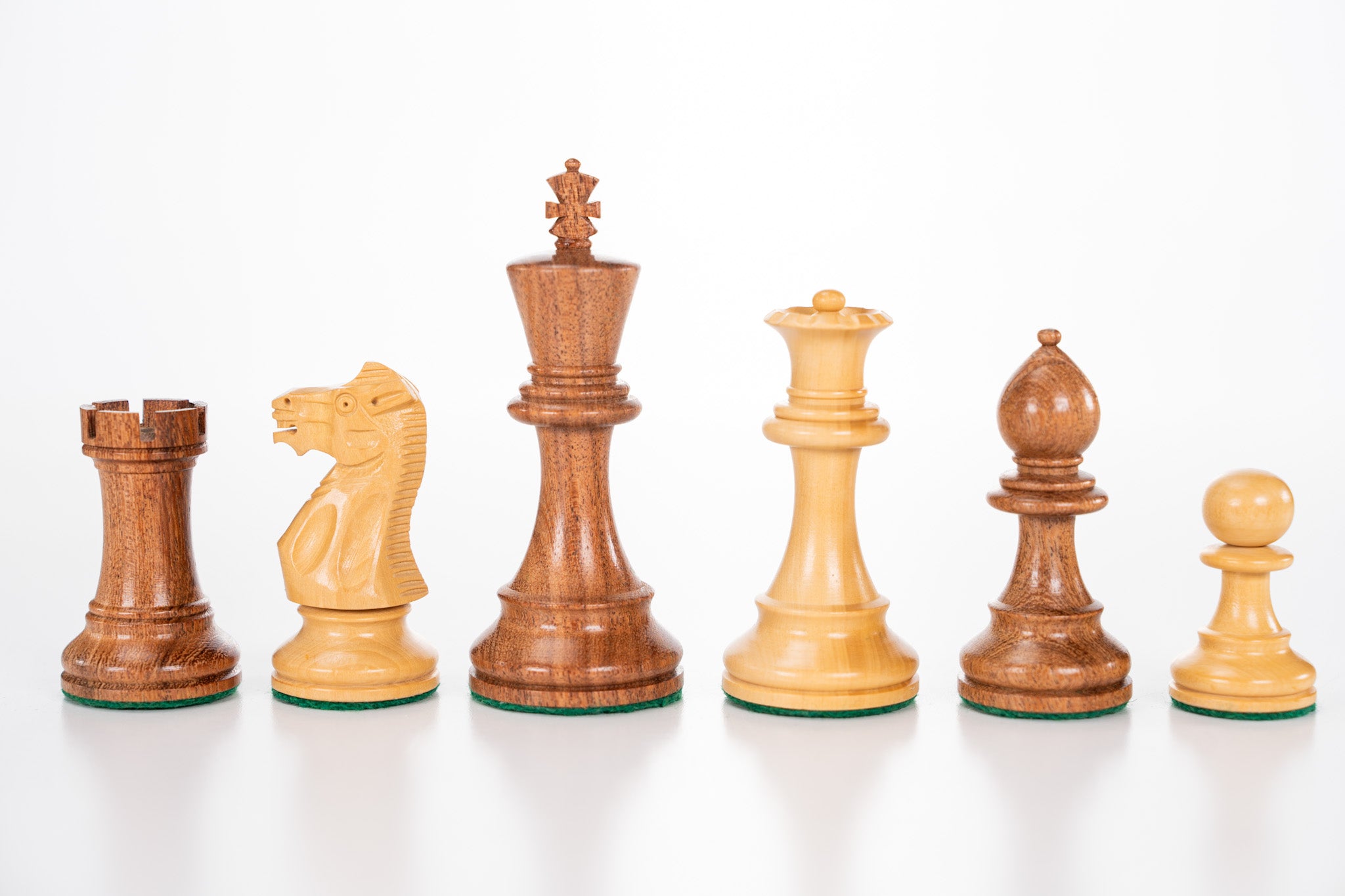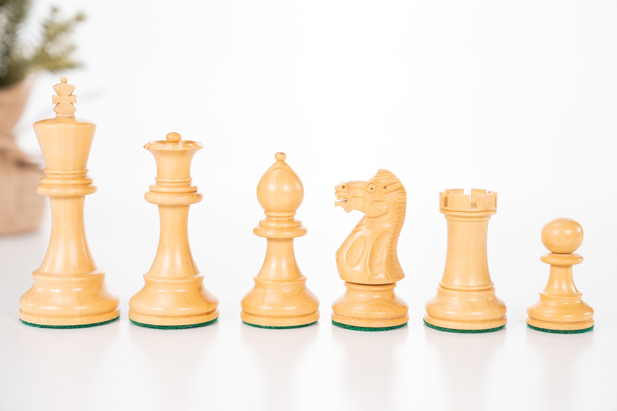 Light pieces are finished in clear-stain Boxwood as with most sets of chess pieces.