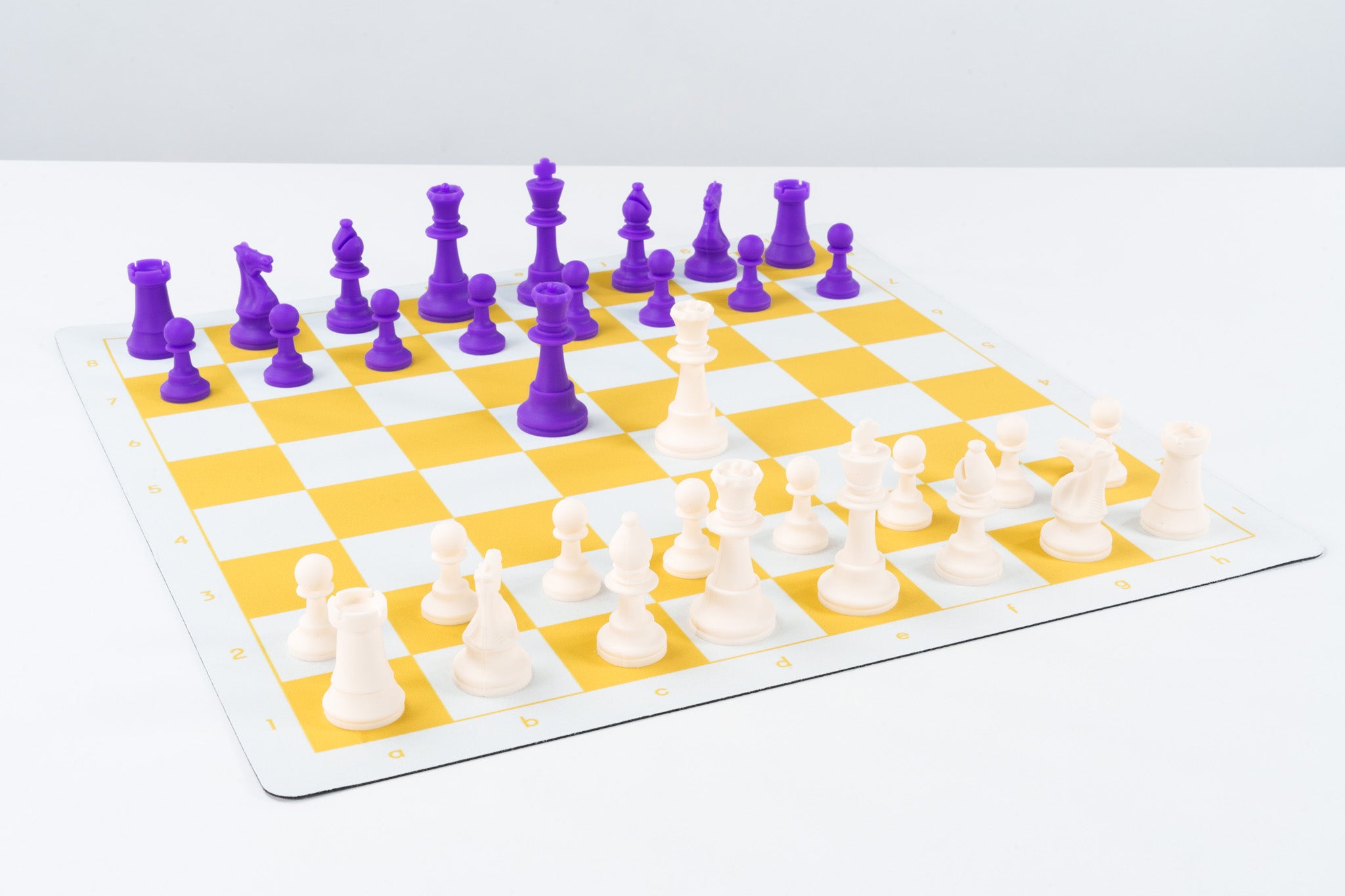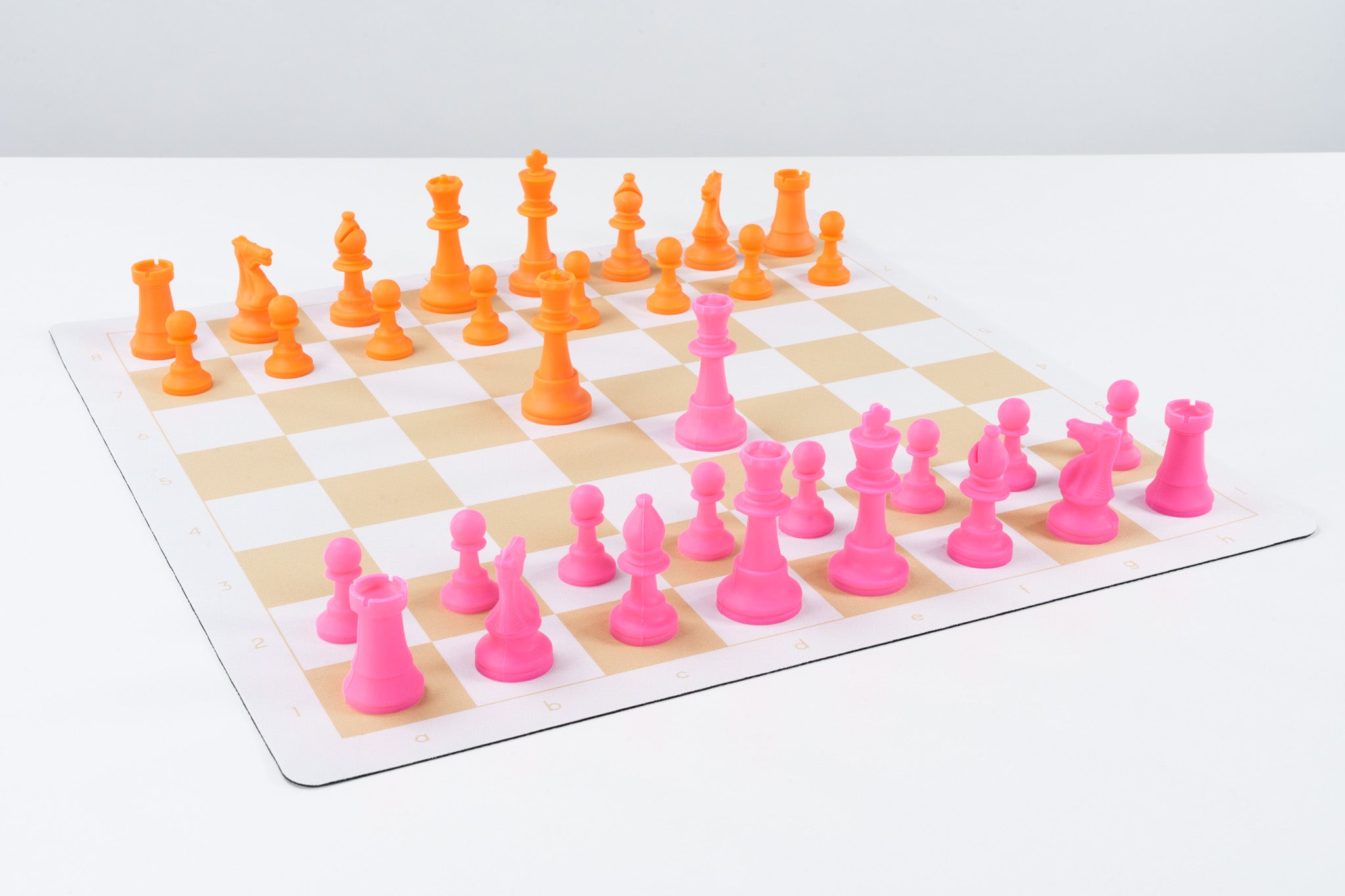 Perfect for silent and stealthy every-day play - resilient, unique and colorful silicone pieces on our best selling Flex Pad chessboards.