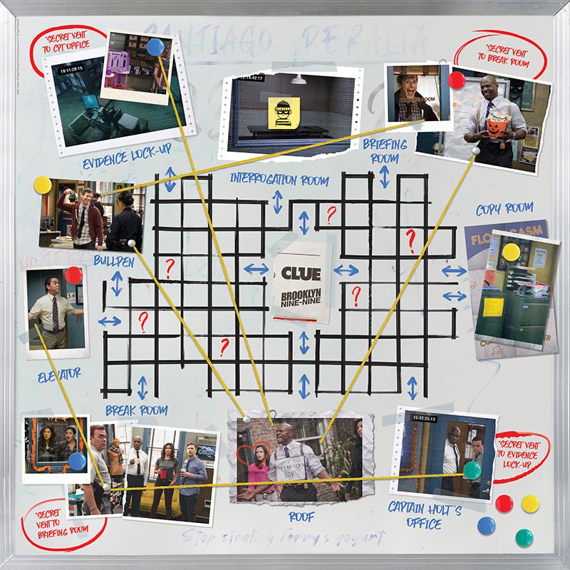 - Locations around the precinct include The Bullpen, Captain Holt's Office, The Break Room, Evidence Lock-Up, The Interrogation Room, The Briefing Room The Roof, Copy Room, and Elevator