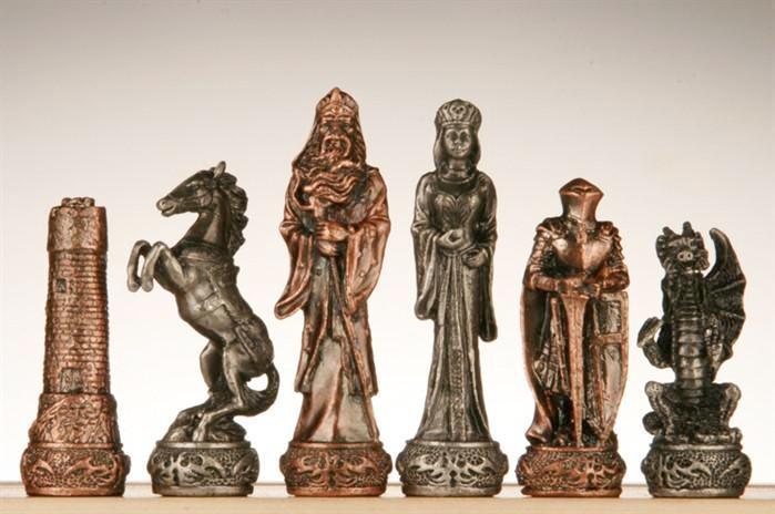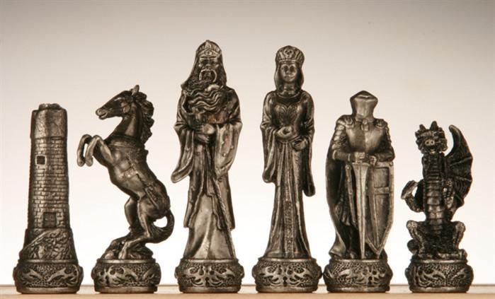 This Fantasy chess set will transport you to the literary world of Tolkien and the even older Arthurian lore of dragons, fair maidens, castle towers, brave stallions, wizards and warriors. It is the imagery and narrative steeped in early European legend that has stirred our imaginations for centuries. The beautifully cast pewter chessmen will delight players young and old alike. You will want to display this gorgeous chess set for all to admire.