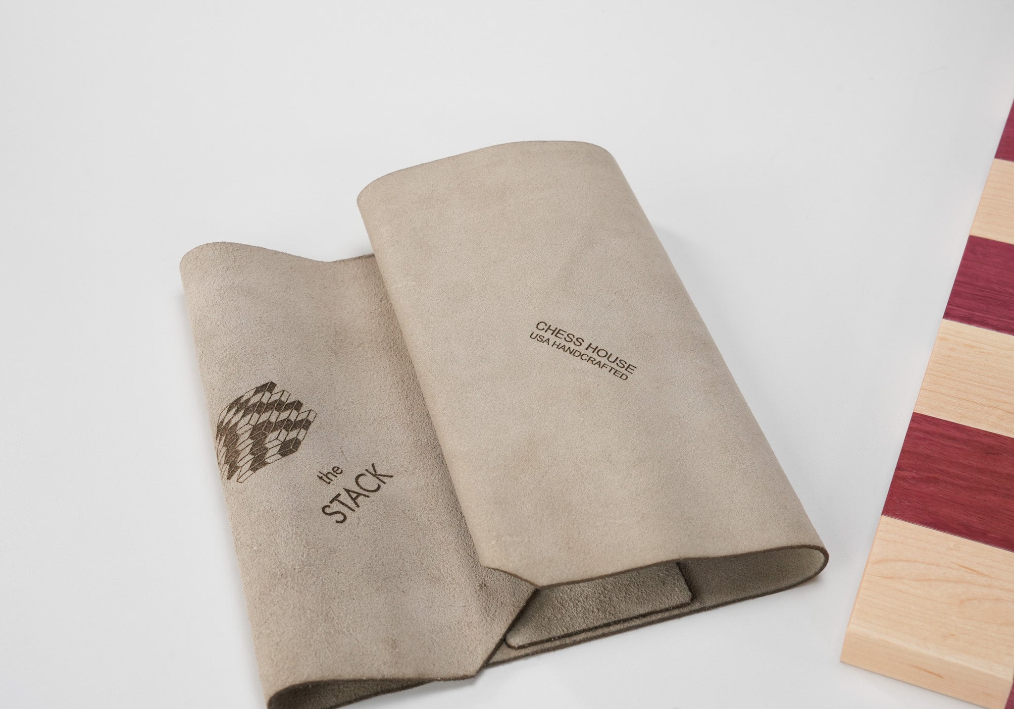 The soft suede wrap with embedded magnets artfully covers the STACK to both protect and enhance it's presentation and emphasize the exclusivity, uniqueness, and care the STACK receives during every step its creation.