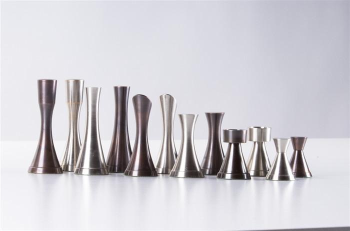 Contemporary brass chessmen have smooth, flowing lines and an elegant look that goes with a modern decor.