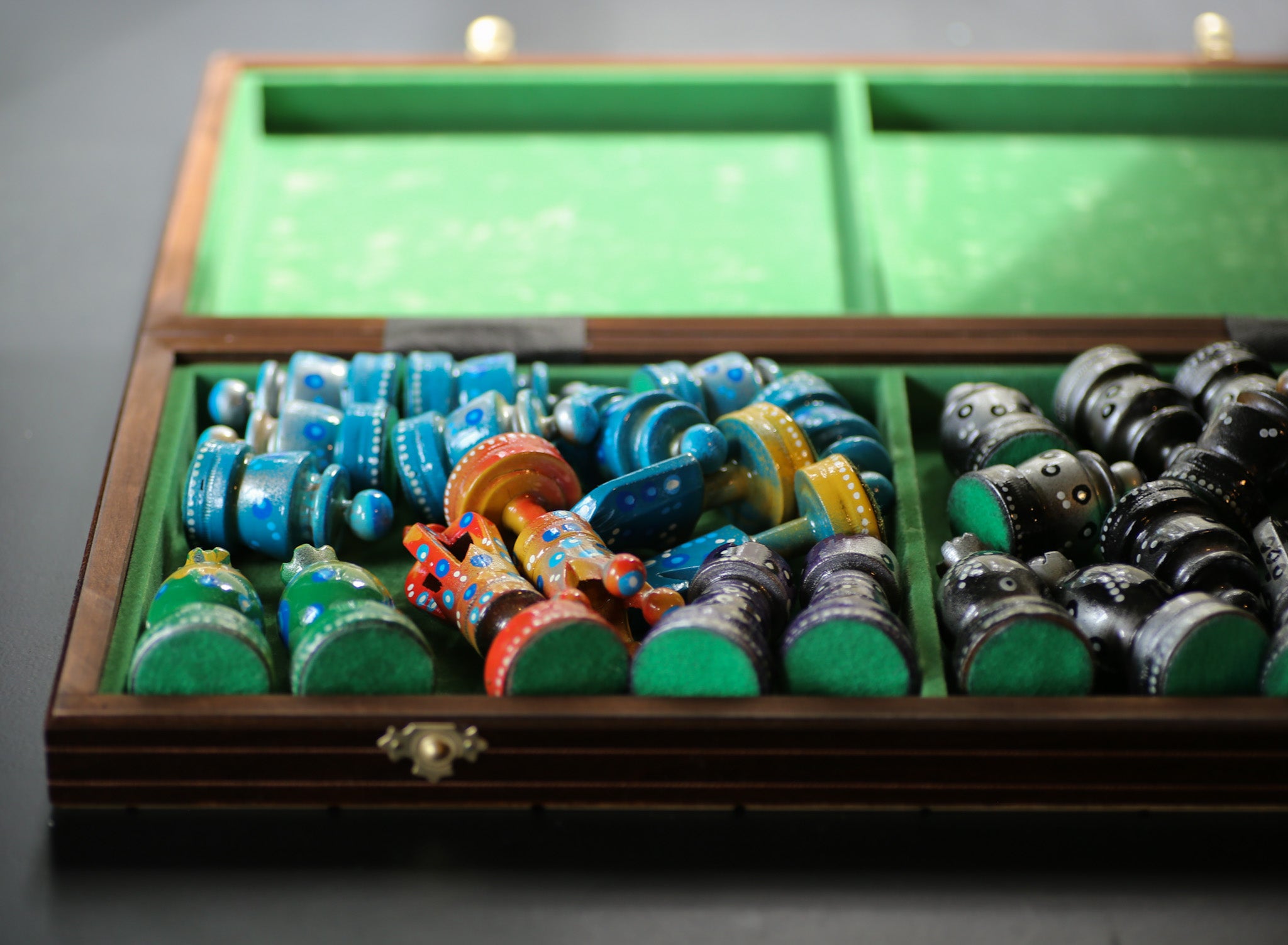 The Surefooted Journeyman - Sydney Gruber Painted 20" Large King's Inlaid Chess Set #10