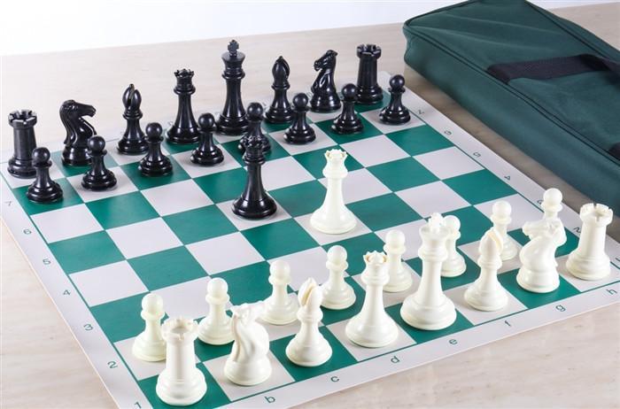 Plastic club chess sets are inexpensive sets for personal use or economical for clubs, classes, and schools. Most boards seen are green, something of a standard because green is the least stressful color to the brain while trying to concentrate.