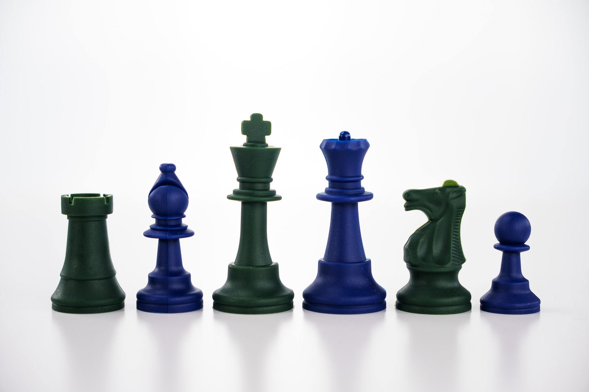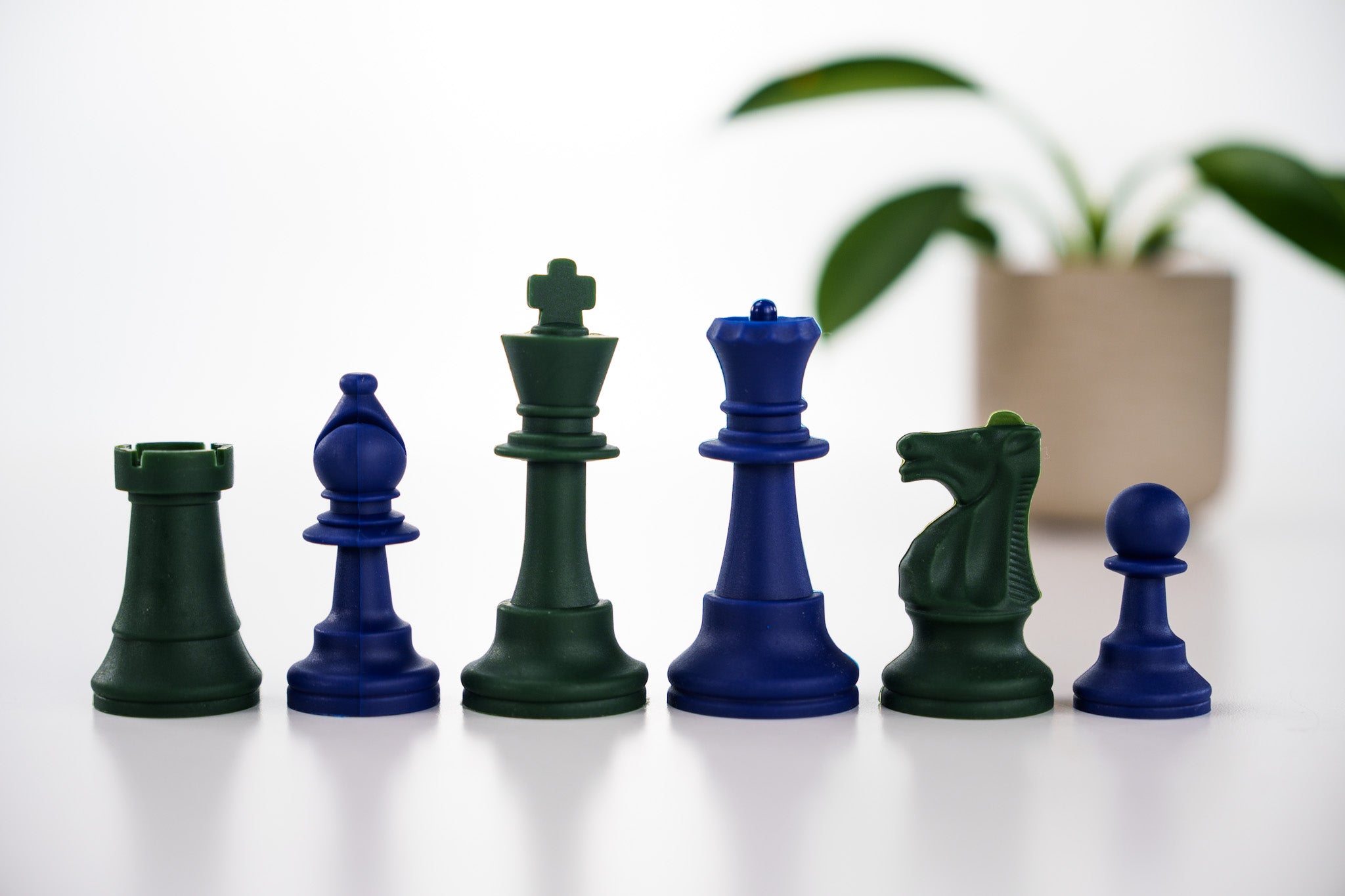 About The 3 1/2" Silicone Club Chess Pieces - Navy and Army Green