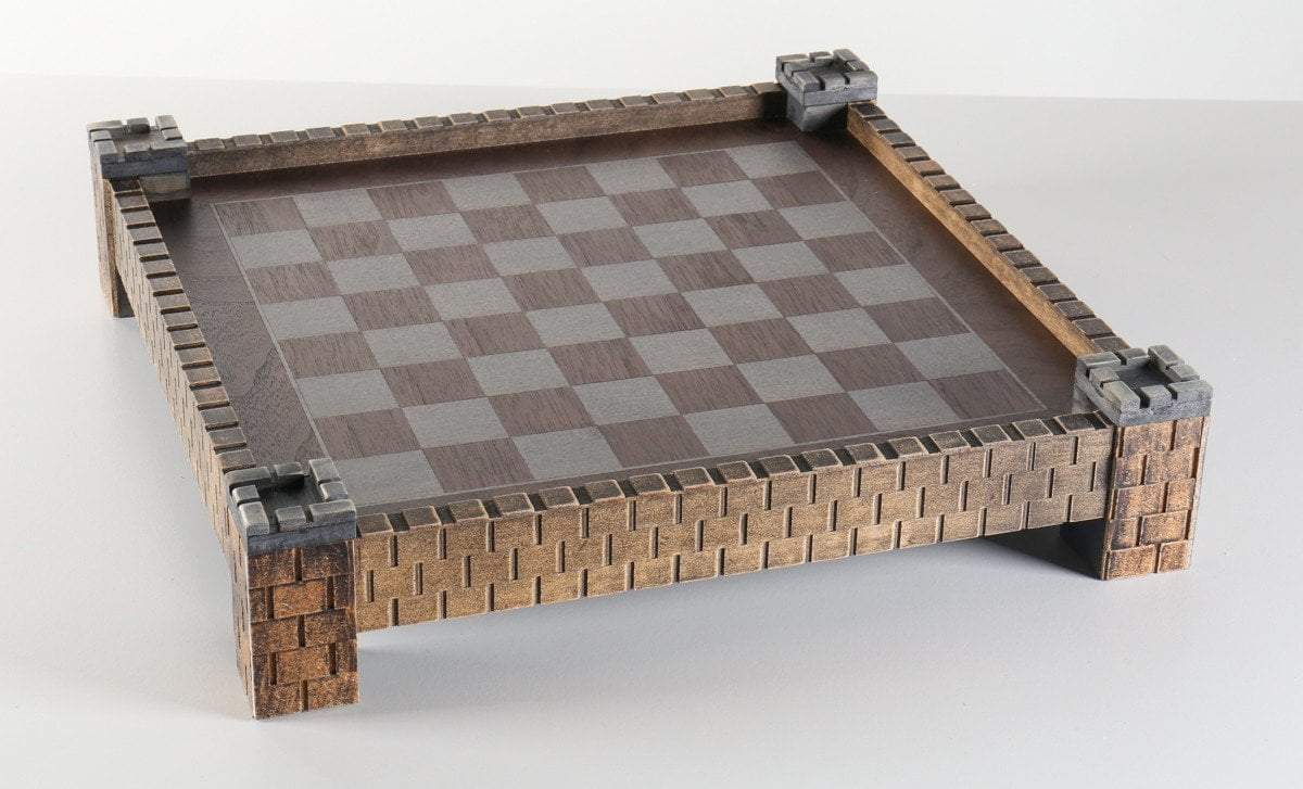This 17" Fortress Chessboard's aged castle grounds pair nicely with any medieval chessmen such as the legendary King Arthur, who according to folklore, defended Britain from the Saxon invaders in the 5th and 6th centuries.