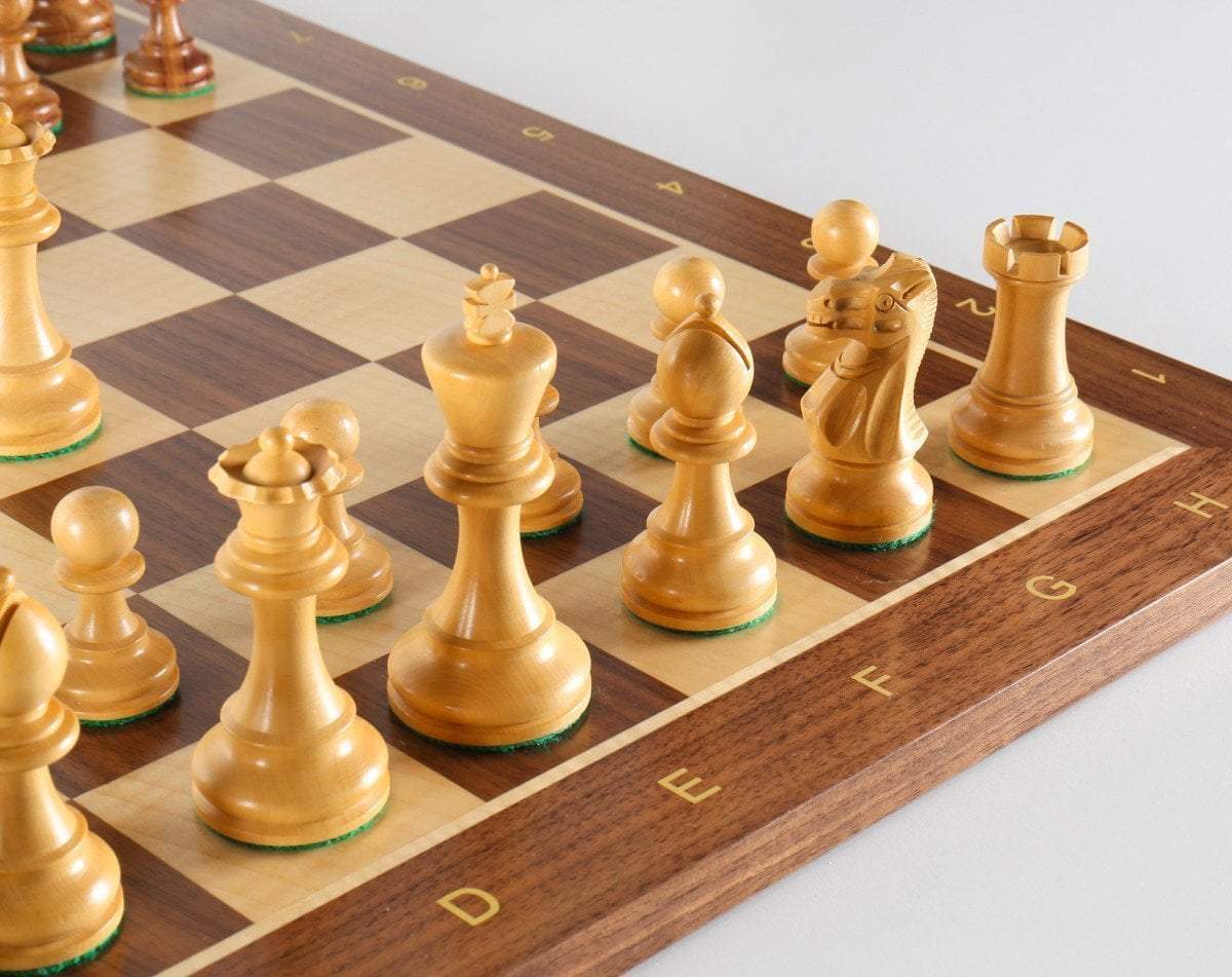 The 21" mahogany wood chessboard is smoothly finished and offers coordinates that help in recording games on chess notation books or replaying and reviewing your own games or those of famous players.