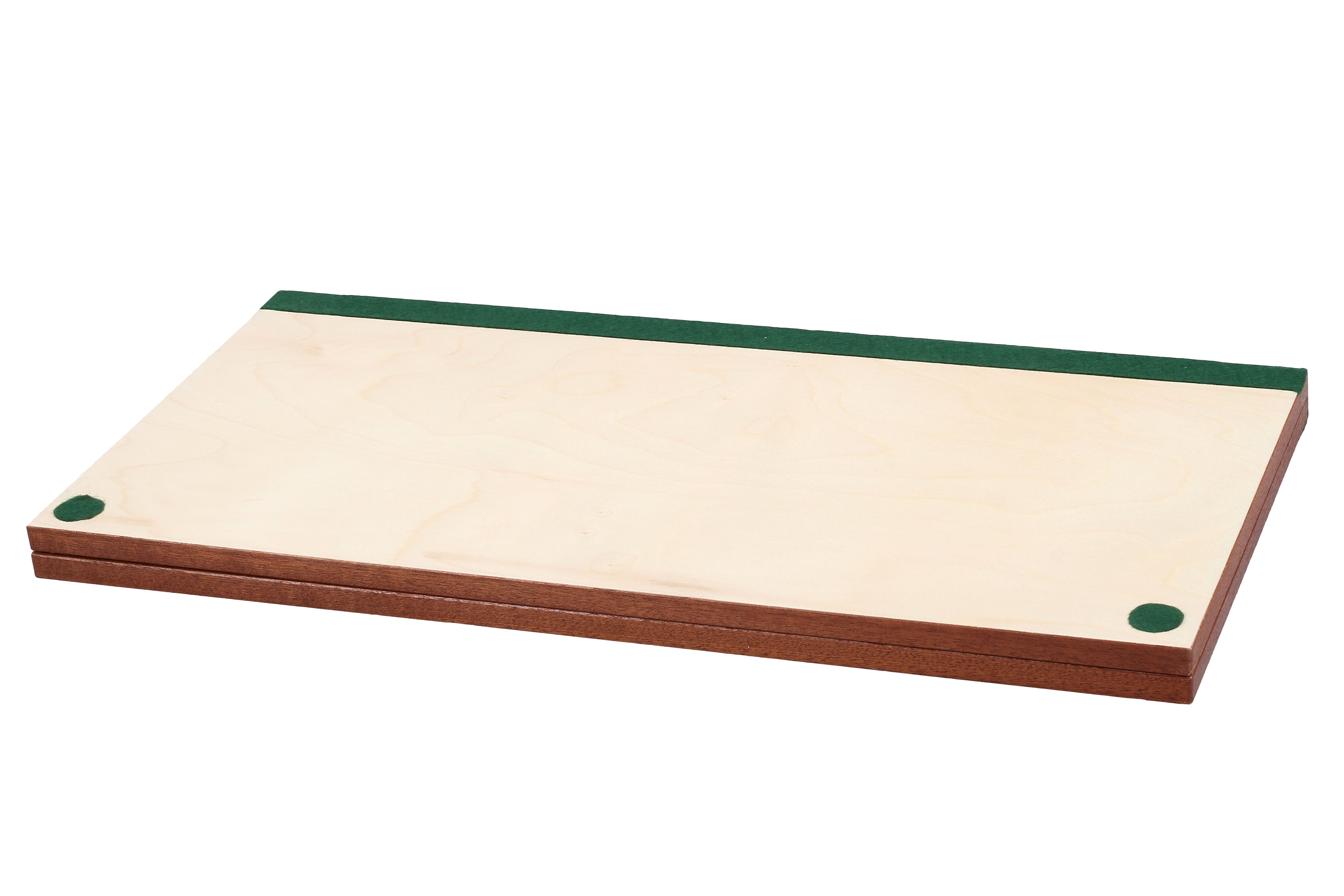 Note that due to the hinges and the way the board folds, there will be a gap between the two halves.  If the felt is pushed into the fold, it will produce a larger gap than if the felt is outside the fold (shown in last photo).
