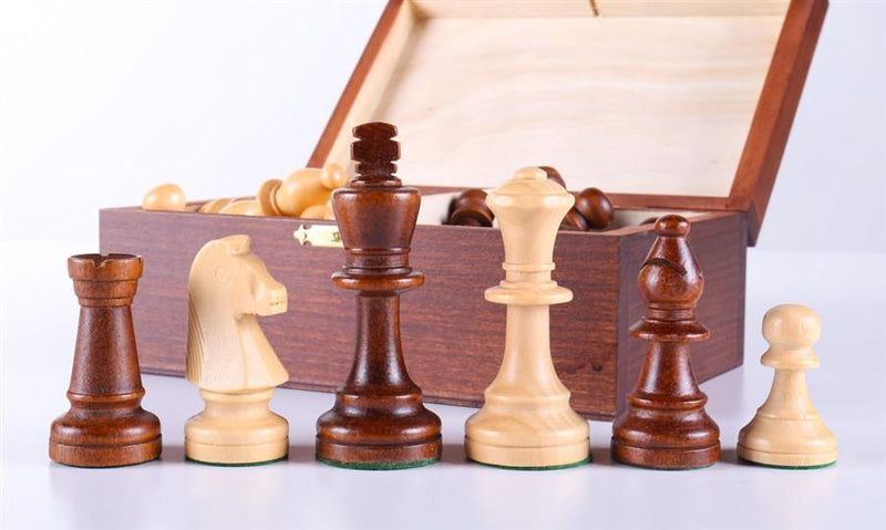 3 3/4" Standard Staunton Chess Pieces #6 in Dark Wood Box - Piece - Chess-House