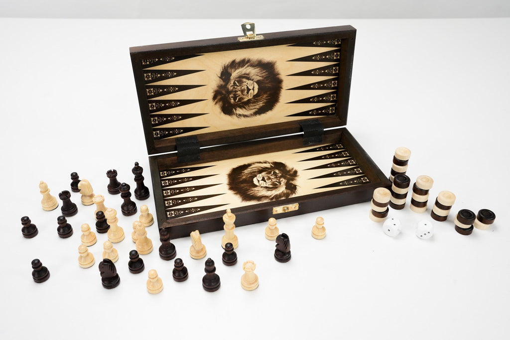 About The 10.5" Wooden Travel Chess and Backgammon Game