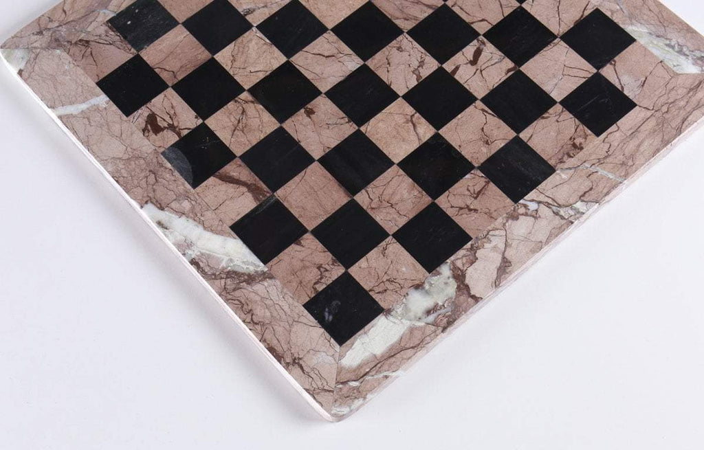 The intrinsic, natural beauty of this marina and black marble chess board, along with it's smooth polished finish and weighty presence make it a superb unit. The marble stone's natural veins and swirls are unique to every board. As a result these marble chess boards are wonderful gift ideas.