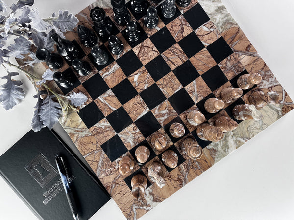 About The 16" Marble Chess Set Euro Design in Marina & Black