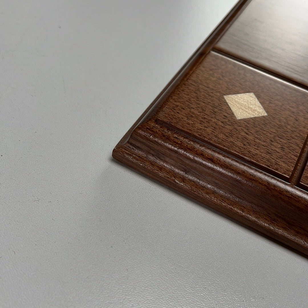 Styling - Lightly grooved border and ogee edge are special features of this board. Maple insets on each border are unique to this decorative board, a great gift to pair with almost any suitably sized set of wood pieces.