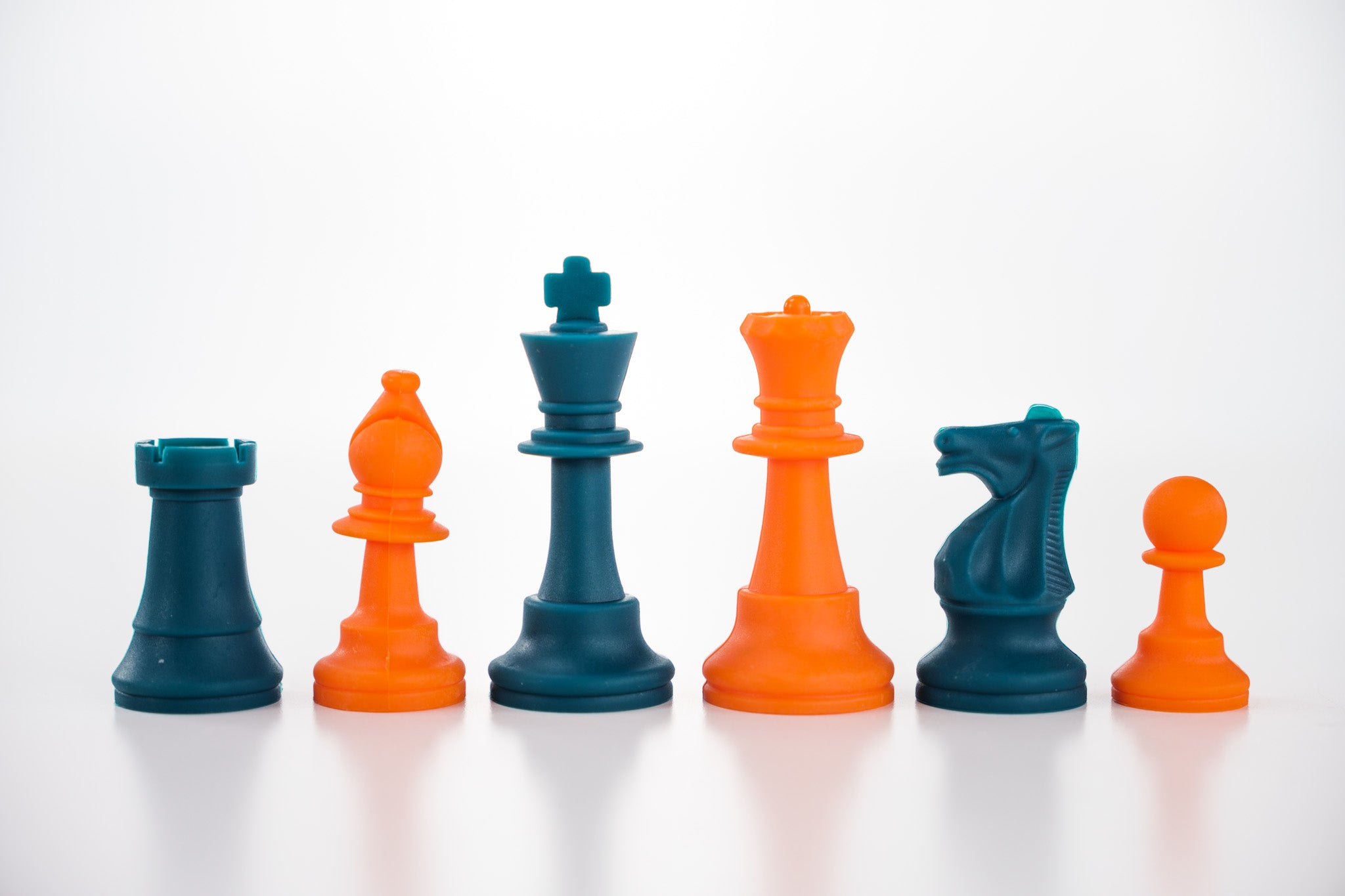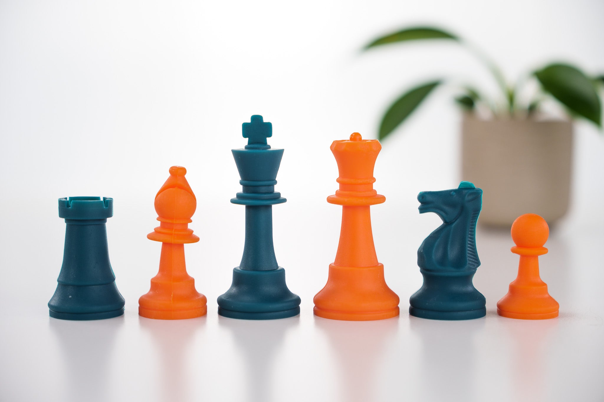 About The 3 1/2" Silicone Club Chess Pieces - Orange and Teal