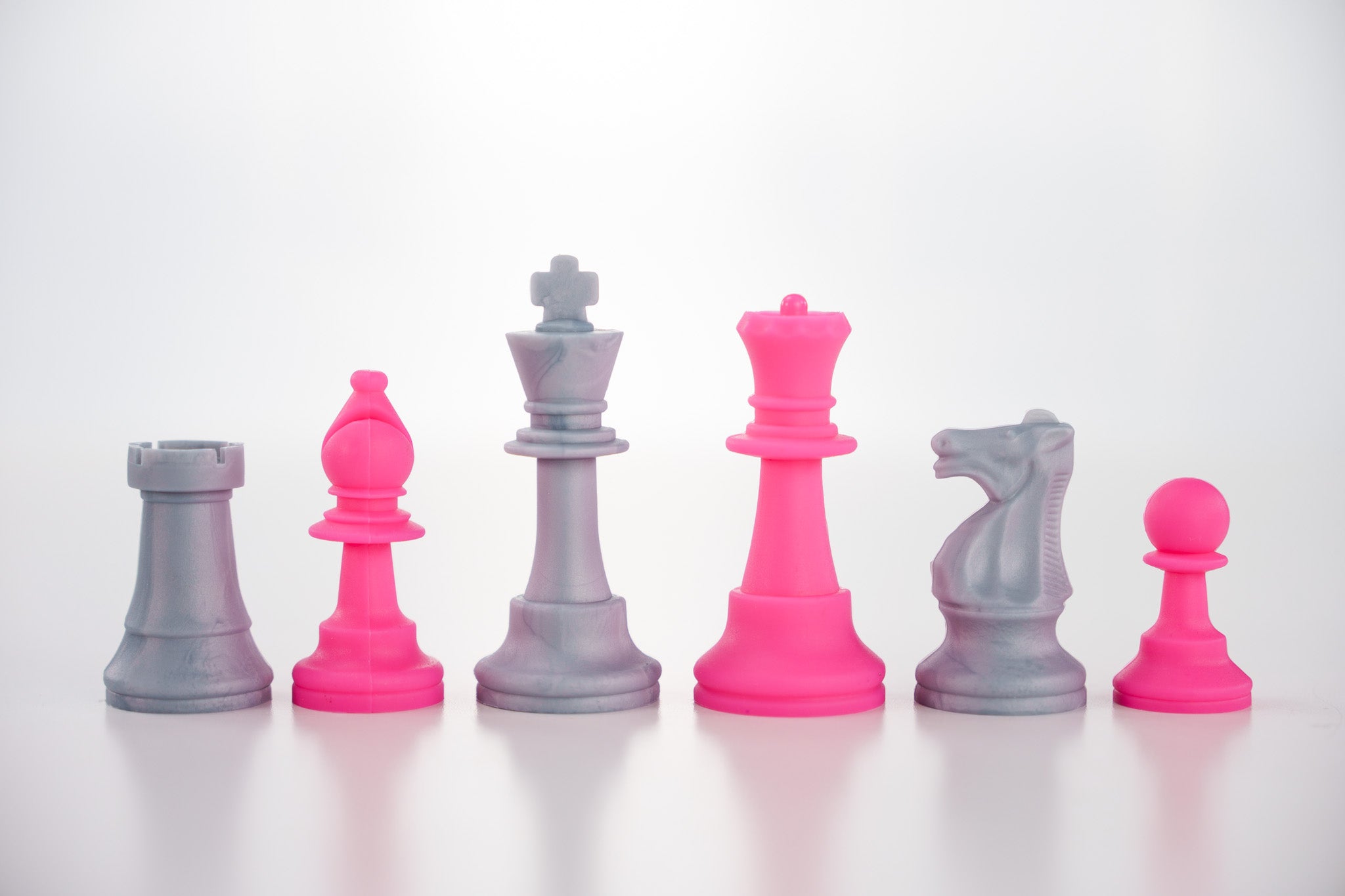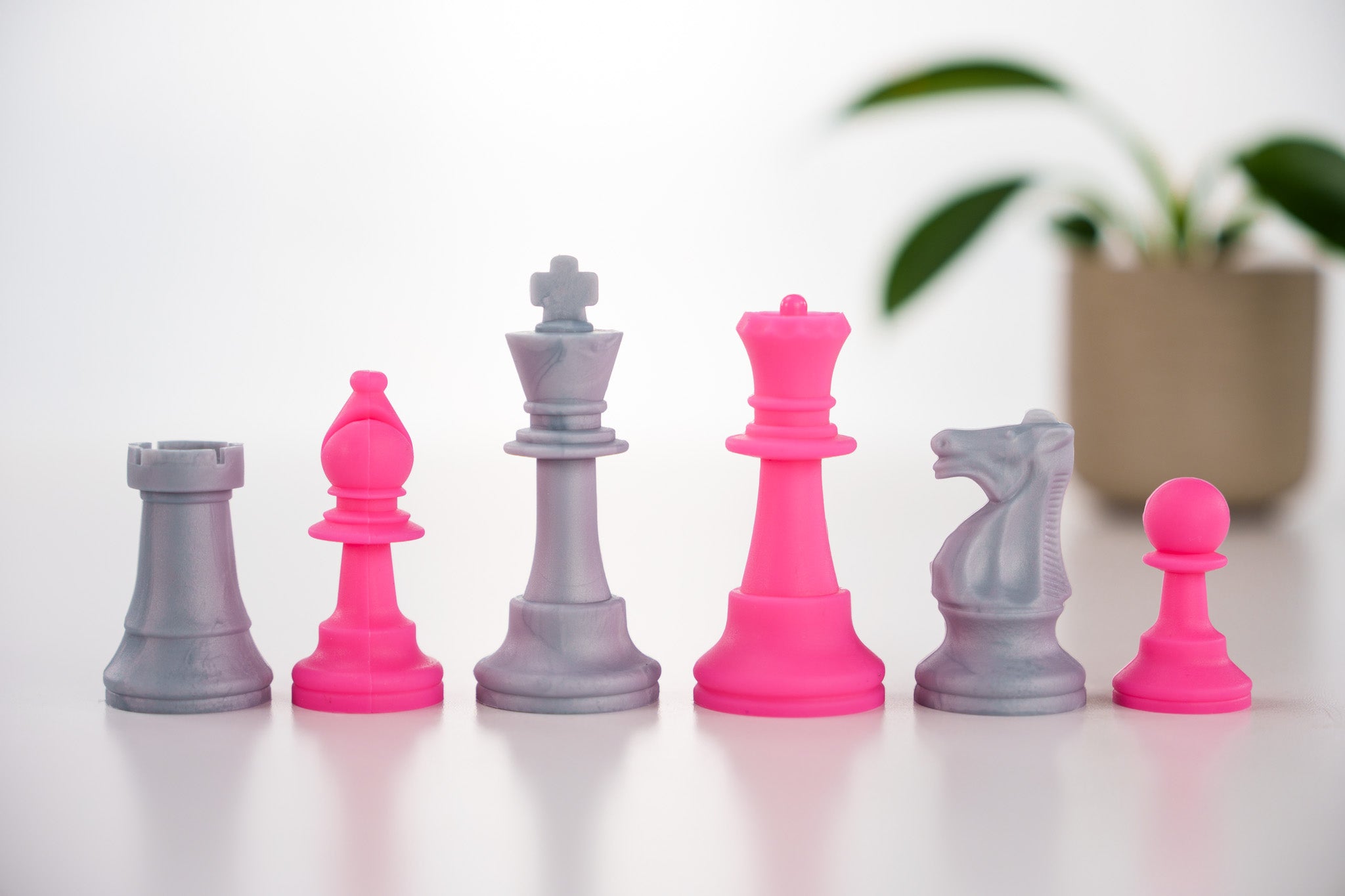 About The 3 1/2" Silicone Club Chess Pieces - Silver and Pink