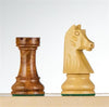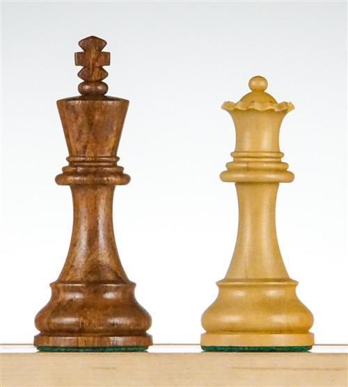 This set is perfect for any age and skill level, in fact at this price point, an ideal first wooden chess set. The sleek chess pieces blend championship specifications with a minimalist style. In particular the knight is fashionable and welcoming. The pieces are carved by master artisans from quality boxwood and sheeshamwood and nicely weighted for a fantastic chess playing experience. They are finished with a protective clear stain. Felt bases protect a chessboard and enhance the smooth playing qualities.