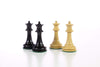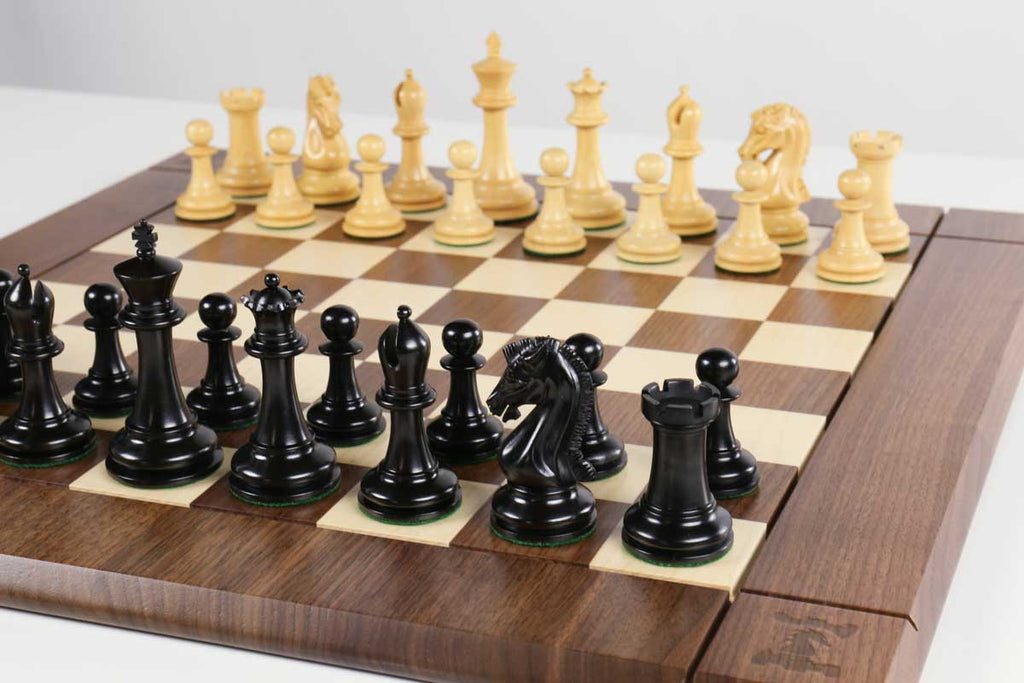 The real ebony wood chessmen top out with a 3.75" King, extra weight for a well-balanced feel, and extra queens, both helpful for pawn promotion and now the standard for superior chessmen.