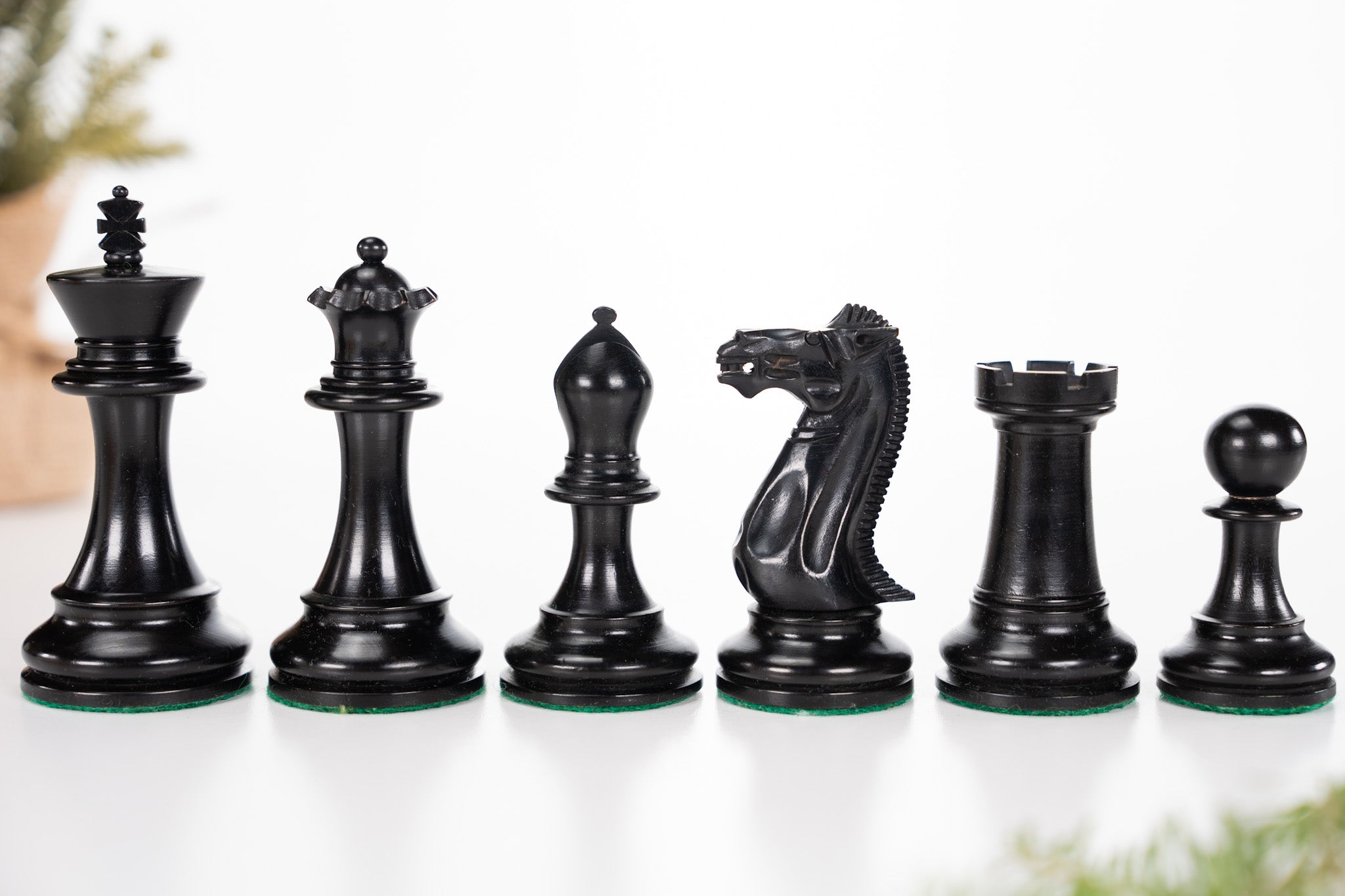 The 34 pieces including extra queens are carefully handcrafted in Boxwood and ebonized Boxwood by master woodworkers in India.