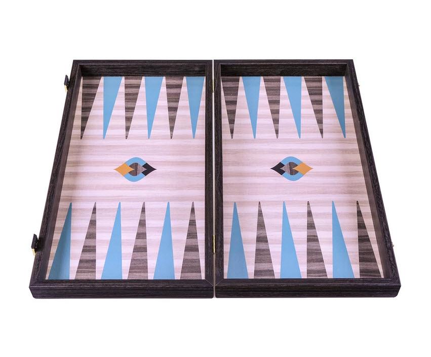 The Arabesque art backgammon is a beautiful incorporation of repetitive shapes in smooth colors and lines. The density of Arabesque decorations is wonderfully oriented and harmonious while the patterns are inspired by the sand waves of the gold desert.