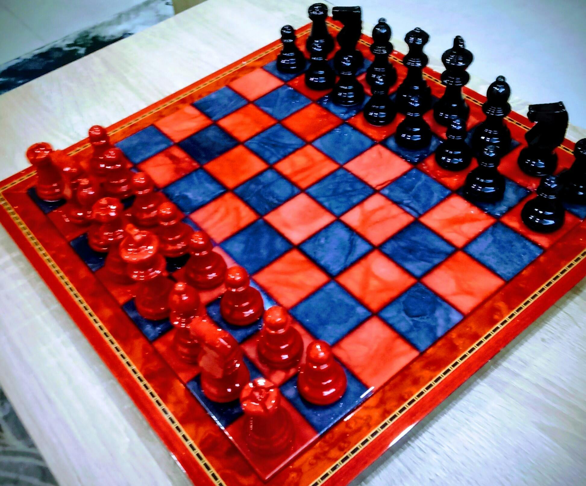 About The Black and Red Alabaster Chess Set with Wood Frame