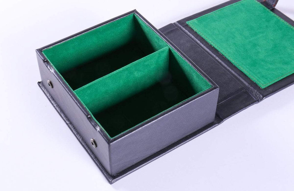 Attractive book style leatherette box keeps chessmen dust and pet free so you don't have to go searching for replacement pieces.