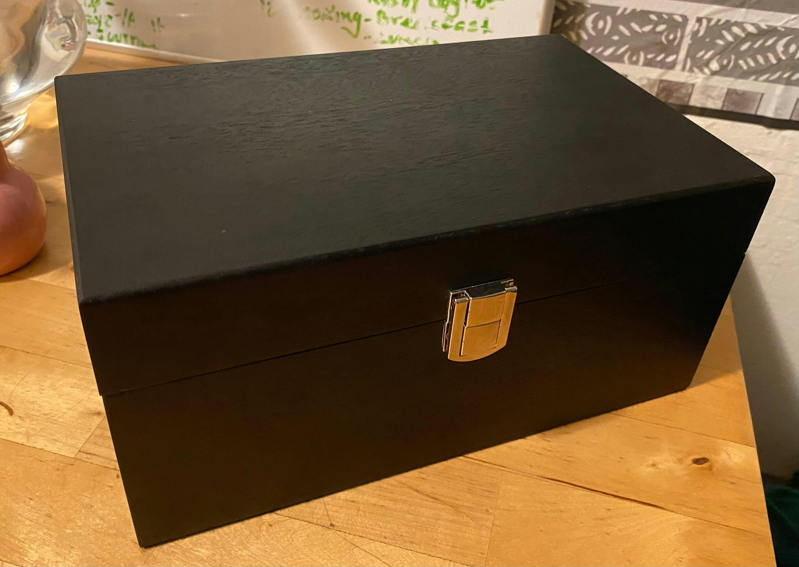 - Interior dimensions 8.6" x 5" x 4" (including lid space)