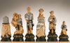These chessmen are made out of Polyresin, which is a crushed stone composite. It has the look and feel of stone, but the durability of a plastic. It is truly the best of both worlds.Specifications: