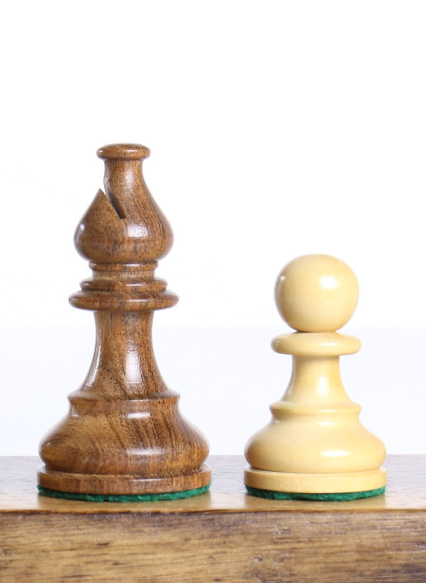 These pieces handcrafted in India by expert craftsmen. Just pair with your favorite suitably sized chess board or one of our recommendations. The ideal size board has 2" to 2 1/4" squares.