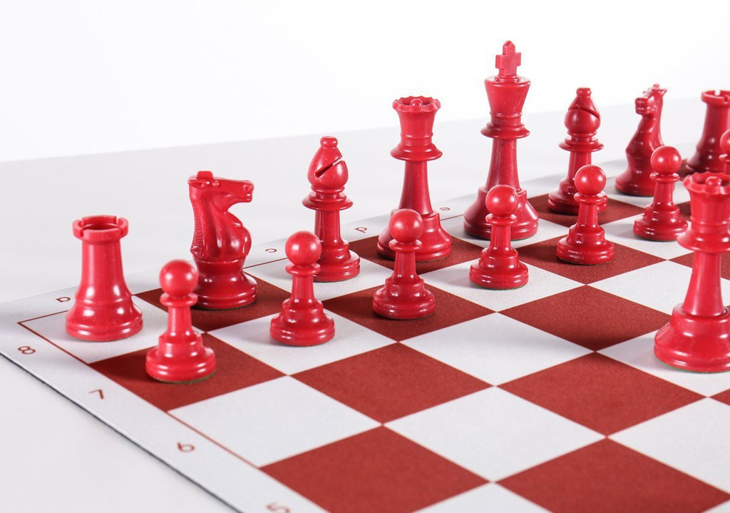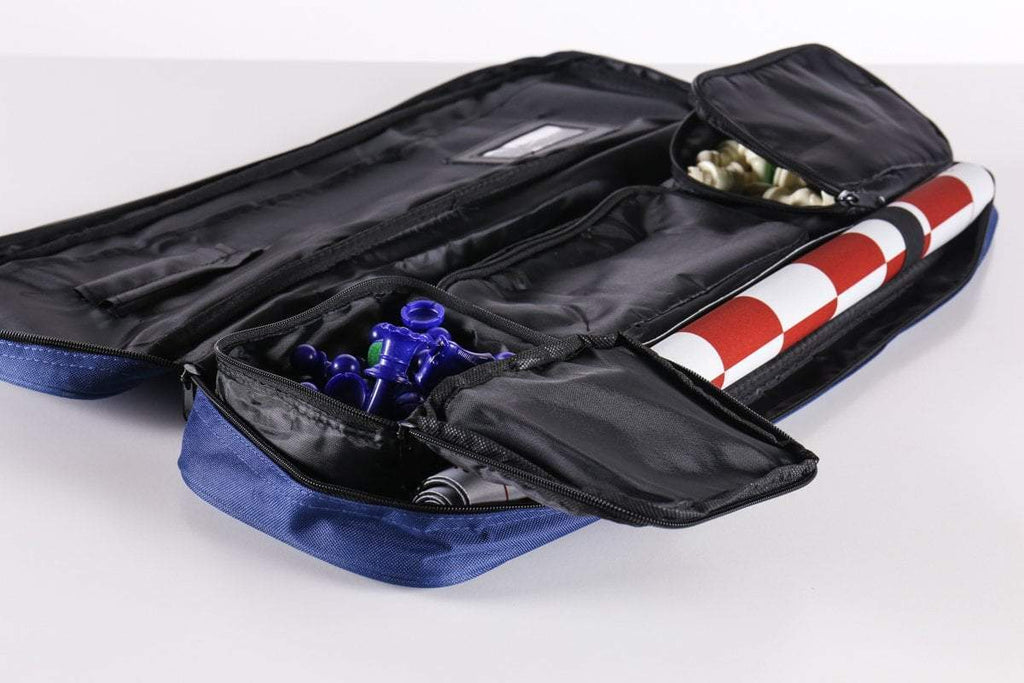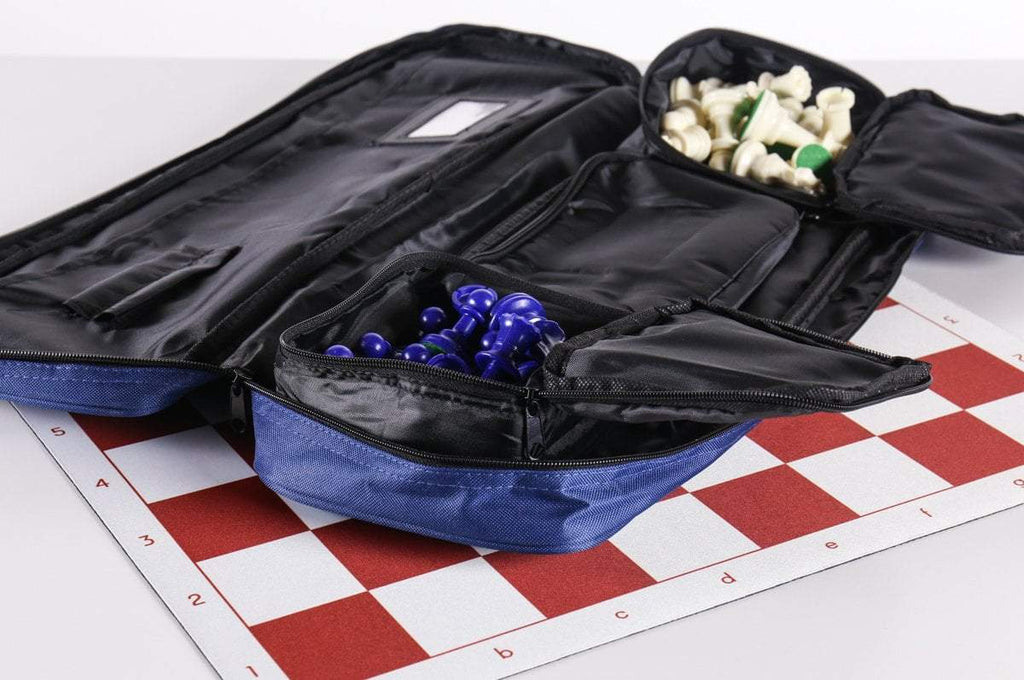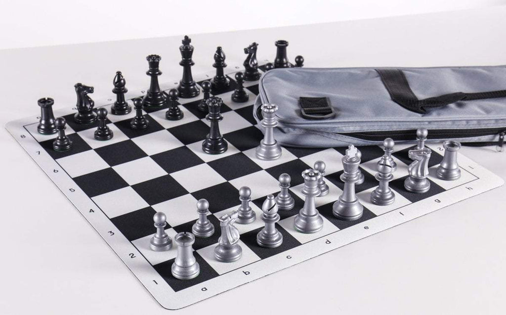 This chess set combo combines our best weighted pieces, roll-up board, and a deluxe bag that encloses everything. The weighted, Staunton pieces on the ultra thin flex pad is one of our best recommendations for players of all ages who want a set for blitz, casual, or club games.