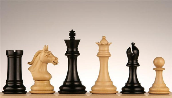 Elegant and prepared for battle, the subtleties of this set of chessmen are skillyfully hand-carved in genuine Ebony wood and Boxwood to be enjoyed by the discerning player and collector. Astoundingly life-like the knight horse is uniquely alert and graceful.