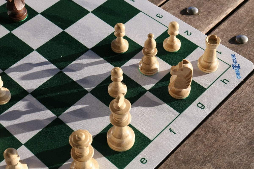 Looking for an affordable wooden chess set that is perfect for on-the-go play? Look no further! The Economical #5 Flex Chess Set is the ultimate choice for easy transport and endless fun. This set features our popular wooden pieces paired with a flex pad chessboard for a smooth and enjoyable game. Plus, it's compact and versatile, making it ideal for taking to the beach, park, or chess club. Choose from a variety of unique colors or stick with the classic green. And don't forget, our Chess House lifetime guarantee ensures that your set will last for years to come.
