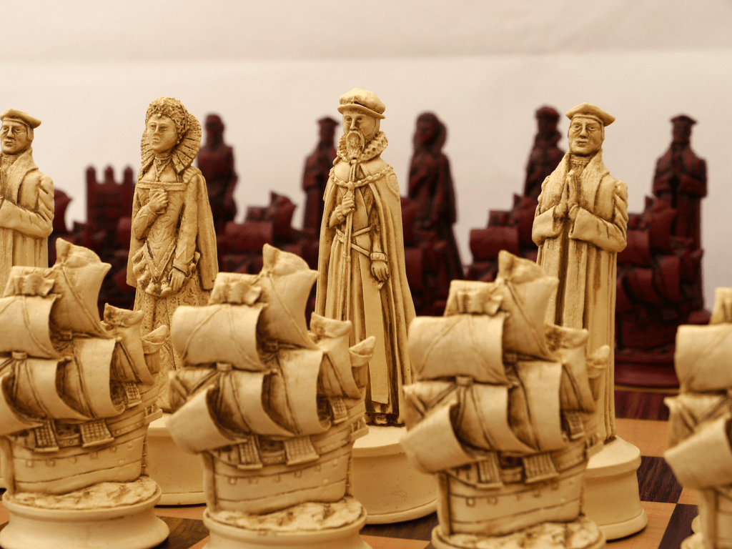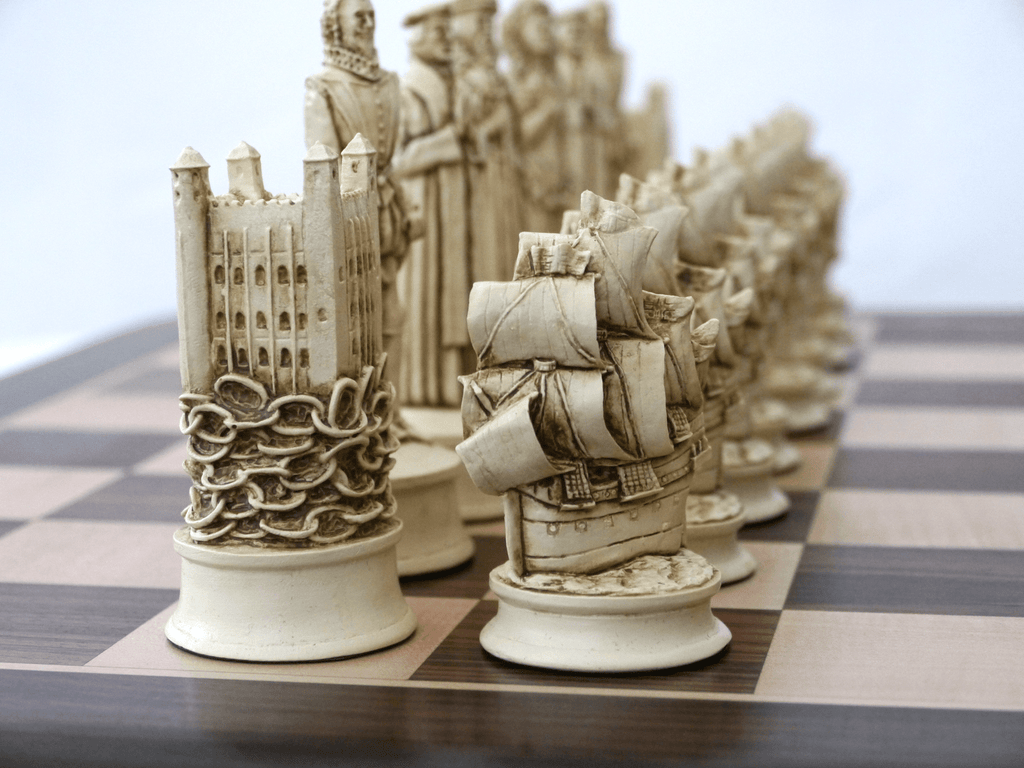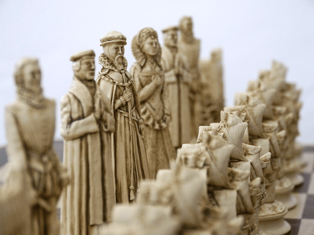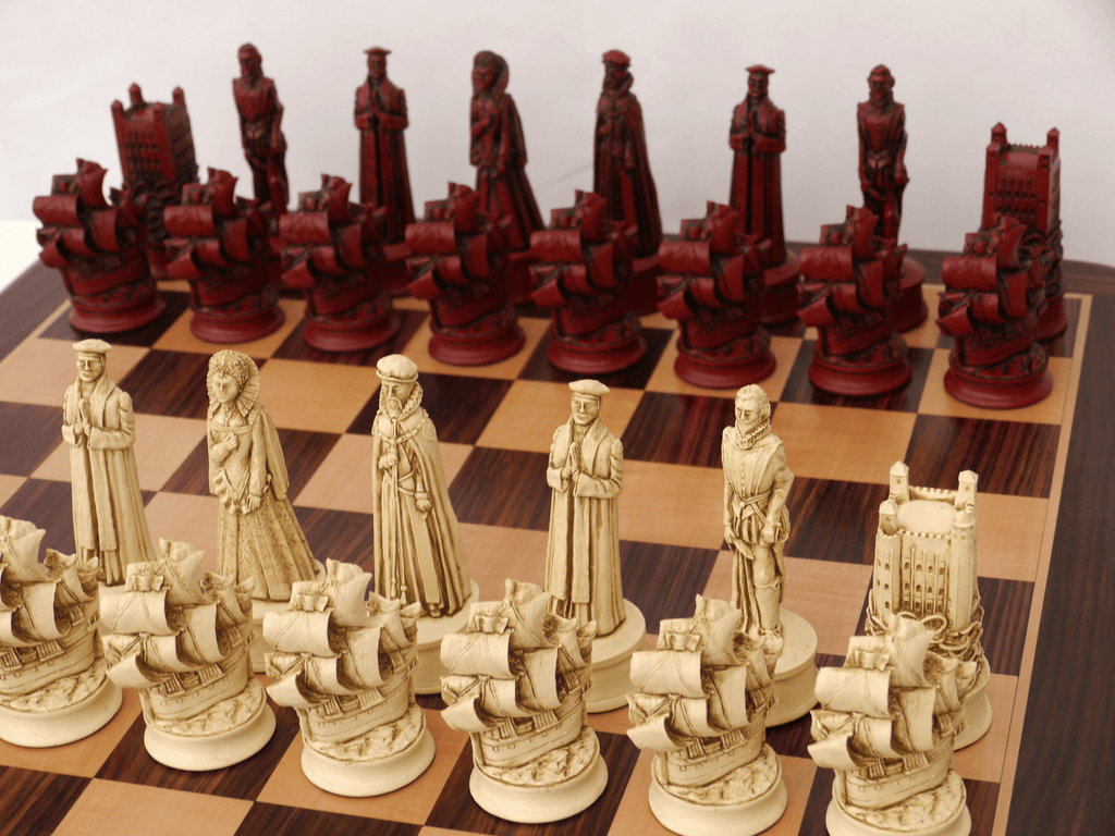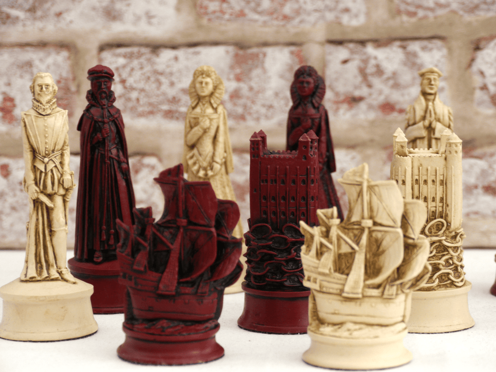Elizabethan England has been encapsulated in this beautiful chess set created by the master craftsmen of Berkeley Chess. The characters bringing the era to life are as follows: