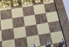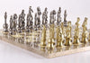 Beautiful sculpted metal pieces and a grey briar colored glossy chess board, these make one classy combination! Show it off and play the game at the same time.