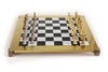 The Staunton chess pieces, the ones we know and love, the ones we simply think of as chess pieces. These classic chess pieces are named after Howard Staunton who was widely considered to be one of the best players in the world. The knight, the most intricate and distinct piece of any chess set, is a realistically carved horse head. The Staunton Knight was likely inspired by a sculpture on the east pediment of the Parthenon. The Metal Staunton by Manopoulos reinforces this architectural history of the original pieces while respecting their timeless design.