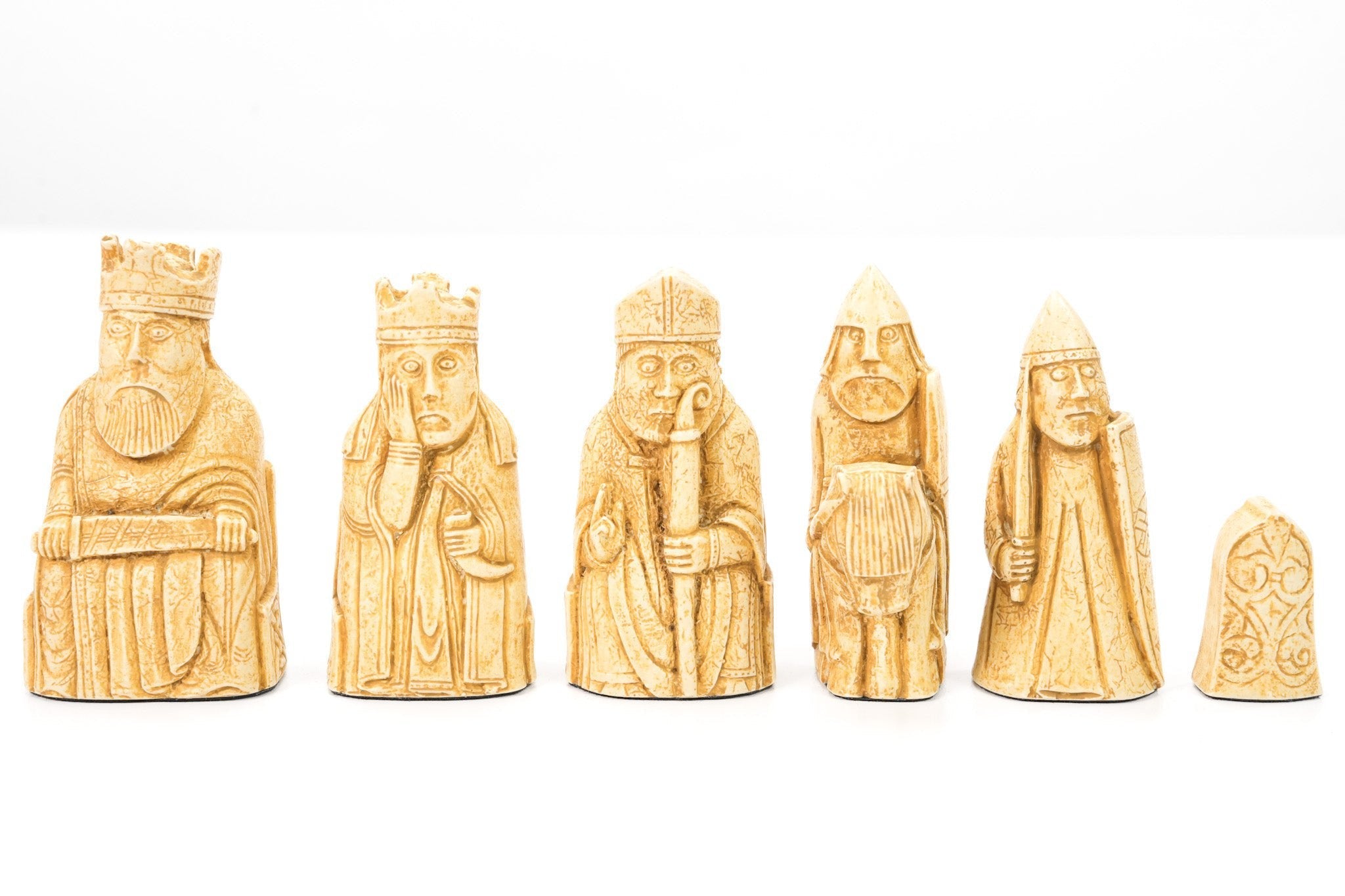 The chess pieces testify to the strong cultural and political connections between the kingdoms of the British Isles and Scandinavia in the Middle Ages, and to the growing popularity within Europe of the game of chess, the origins of which lie in India after around 500 BC. Chess arrived in Christian Europe via the Islamic world, where the game was adapted to reflect medieval European society. Of the ninety-three pieces of this hoard known to us today, eleven pieces are in Edinburgh at the National Museum of Scotland, and eighty-two are in the British Museum.