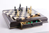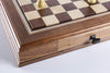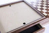 • Two drawers with felted interior.  Each drawer can fit an entire set of tournament size 4" pieces with extra queens and piece base sizes up to 1.7"