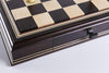 The chess board itself is finished to perfection on both sides. It is surrounded by a leather padded border enabling the board be easily lifted from the cabinet, a unique aspect of the design. This lets you play on the chessboard itself elsewhere in your home should you wish to leave the cabinet in its place.