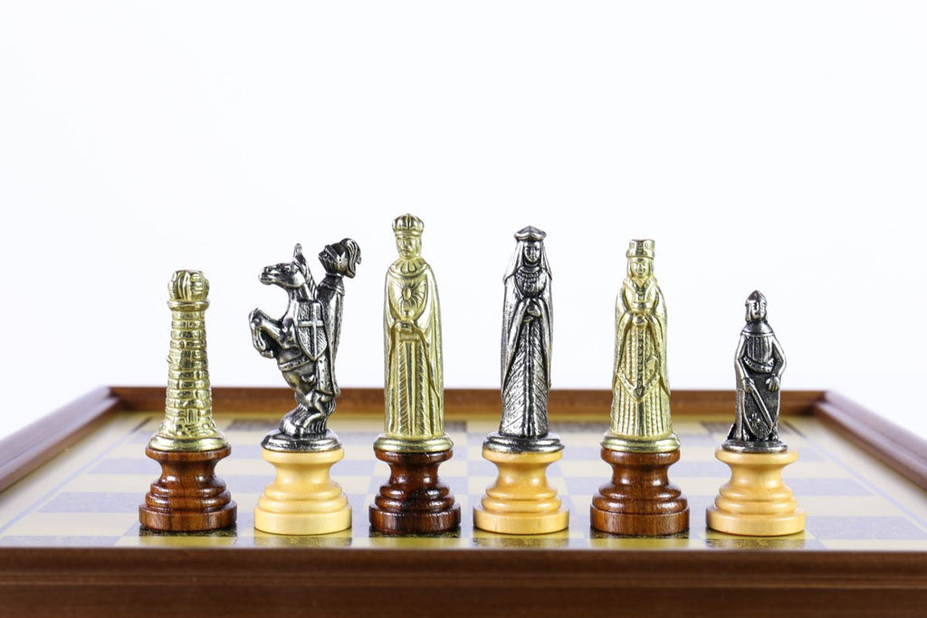 About The Medieval Metal and Wood Chess Set with Pedastle Board