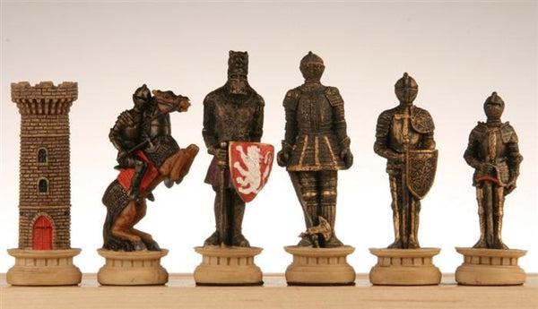 These finely made chess sets are made of poly-resin plastic. Each piece is hand-painted using long lasting, lead-free paint. These pieces are not recommended for children below 10 years of age since they will break if dropped or played with roughly.
