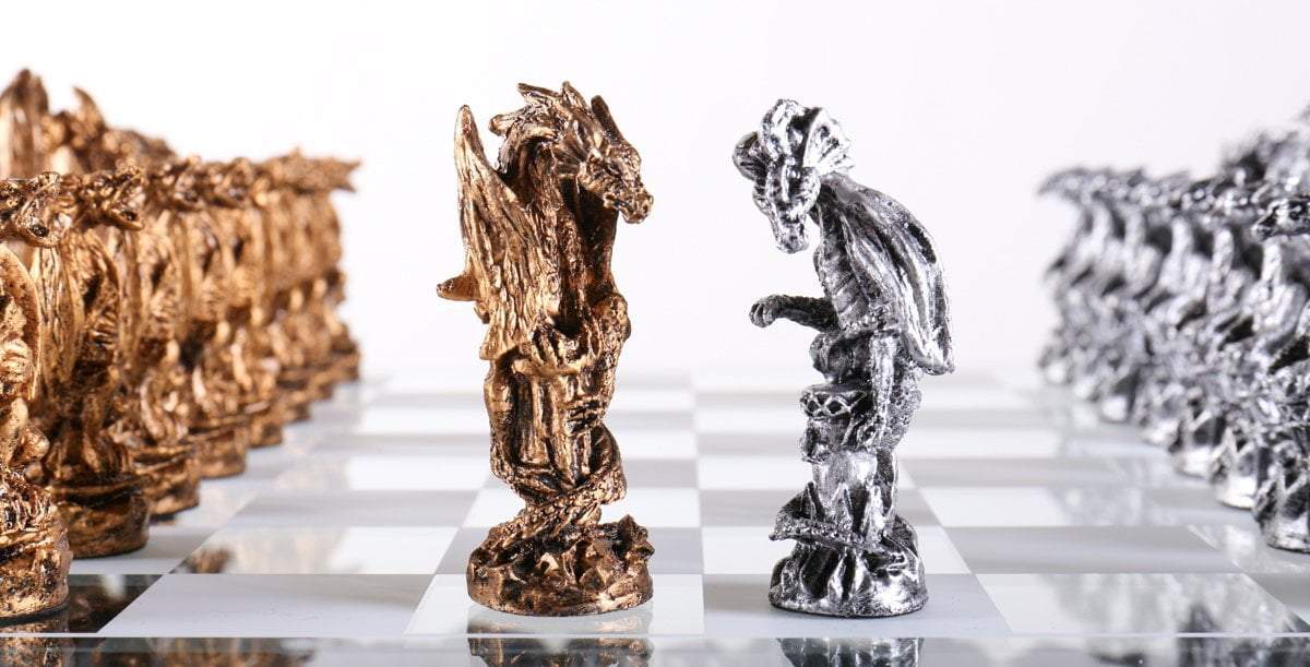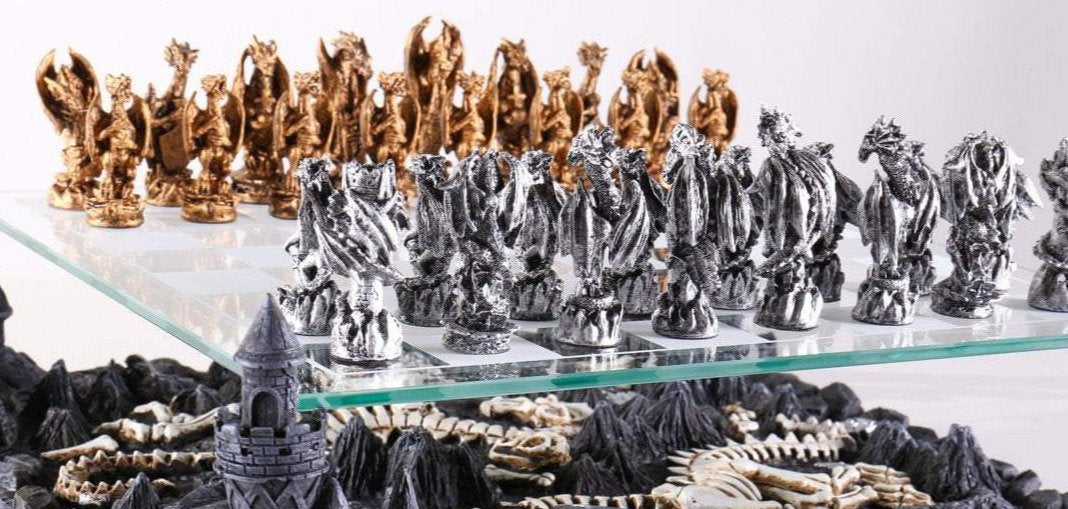 Dragons hold a fascinating and mysterious place in folklore. With this impressive metal chess set, dragons come to life again and youngsters will exercise their creativity while they battle with the dragon theme characters.