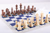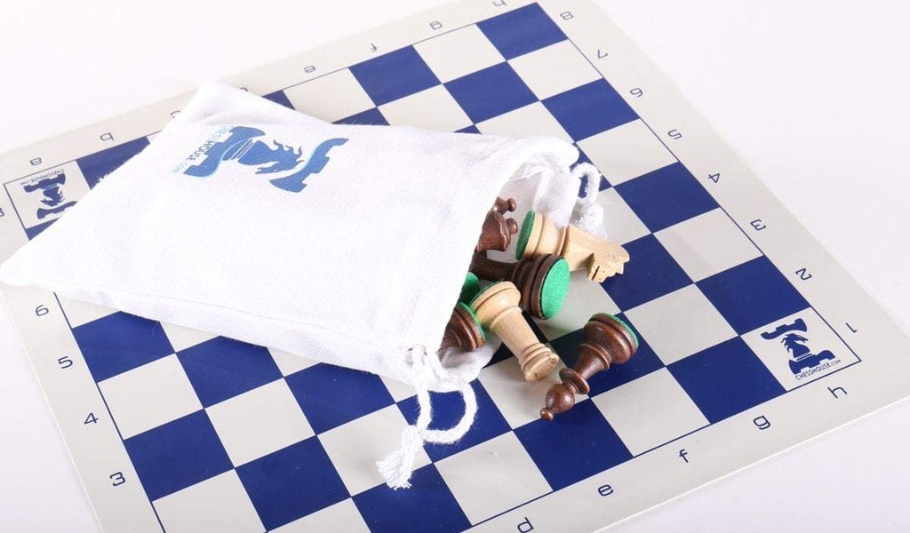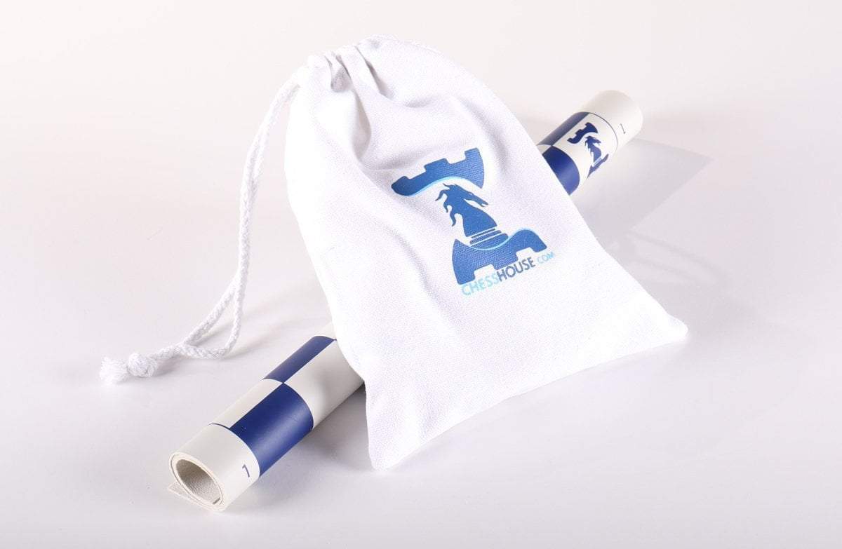 This convenient size club-style chess set is perfect for playing chess at home and on the go. At 14" square it's the miniature size of the club style chess sets. Vinyl chess board with Chess House logo rolls up easily for storage.