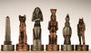 Over 5000 years later, we continue to be fascinated with the ancient Egyptian civilization. Their advancements in science, architecture, and medicine continue to mystify modern scientists and engineers. Their world and the priceless buried treasure they left behind thousand of years later captivate us. Now, you have the chance to get a taste of that ancient style and wonder with our beautifully made Egyptian sculpted pewter chess pieces. Pharaoh, the Royal Consort, the Falcon god Horus, the Cat god Beset, a classic Egyptian Obelisk and finally the after-life god Anubis all play their roles as the King, Queen, Bishop, Knight, Rook and Pawn respectively in this gorgeous rendition of chess. the pieces display an incredible array of detail on all sides, including hieroglyphs! It's truly a stunning set that you will want to display in a place of prominence.