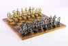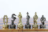 The Italian 17 3/4" Ecoleather Map Themed board on which these pieces sit, features a leatherette vinyl wrapped over pressed wood. The gold and black colors with navigational map overlay provides an excellent canvas to highlight the metal pieces. Note the decorative flourish around the edges also add a nice touch.