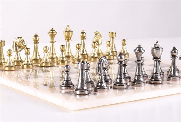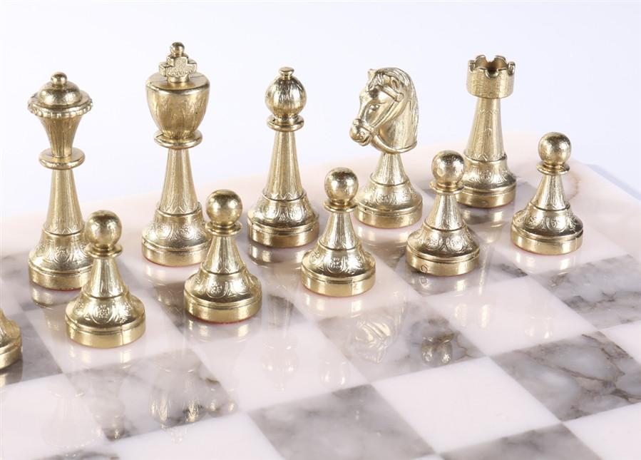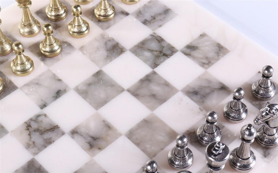 Staunton Metal Men on Grey and White Natural Alabaster Board